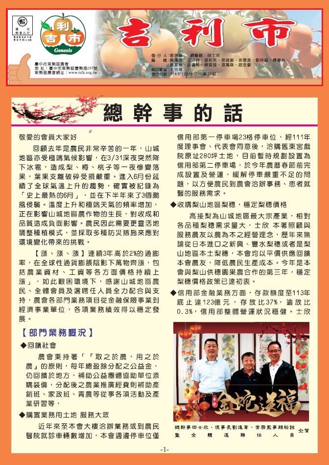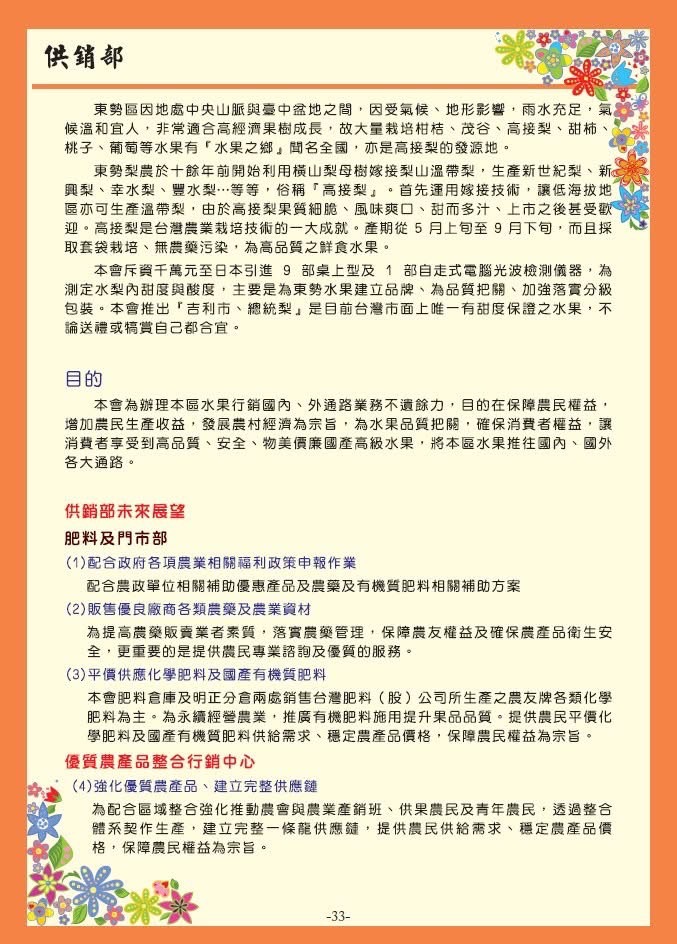 農會簡介 認識農會歷任首長改組前首長 歷任理事長 歷任常務監事 歷任總幹事 現任選任名錄理事會 監事會 代表 農事小組長 總幹事室 部門主管 組織架構圖 農會沿革 農會章程 各部門介紹信用部 供銷部 農民醫院 保險部 果菜市場 推廣部 會計部 會務部 企劃稽核部 生命禮儀服務部 重要記事 農民健康保險沿革 電話一覽表 最新消息 信用部 供銷部 農民醫院 保險部 果菜市場 推廣部 會計部 會務部 企劃稽核部 蔬果截切部 生命禮儀服務部 金融業務 金融業務 存款 放款 代理業務 其他業務 消債條例前置協商專區 農友服務 會員申請辦法 獎學金申請辦法農漁民子女就學獎助學金申請作業要點 農友專區產銷班介紹 農事安全教育 果樹推薦用藥 農藥安全容許量 政府歷年禁用農藥 梨鄉采風 觀光導覽圖 梨業山情 客家元素 影片 資訊揭露 揭露事項 牌告利率 法拍公告 表單下載 信用部 供銷部 保險部 果菜市場 推廣部 會務部 蔬果截切部 網站地圖 員工郵件 員工專區 網路ATM 網路銀行 相關連結 與我聯絡